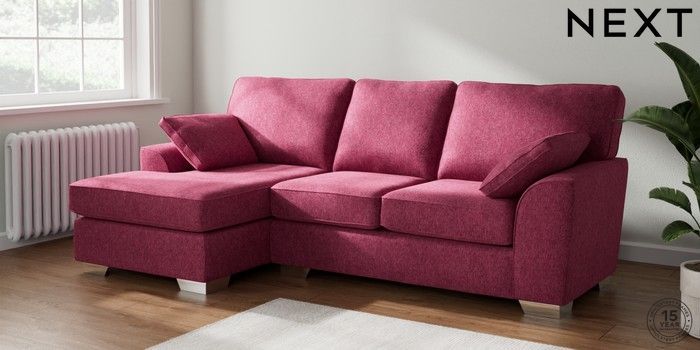 7.2.6 Buy Stamford Medium Sofa Chaise - Left Hand Cotswold Chenille Dark Raspberry Pink Large Square Angle - Chrome Metal from the Laura Ashley online shop Click here to use our website with more accessibility support, for example screen readers