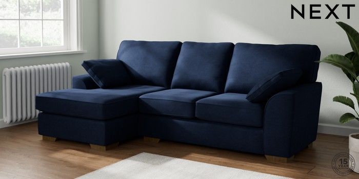 7.2.6 Buy Stamford Medium Sofa Chaise - Left Hand Luxe Chenille Navy Blue Large Square Angle - Mid from the Laura Ashley online shop Click here to use our website with more accessibility support, for example screen readers