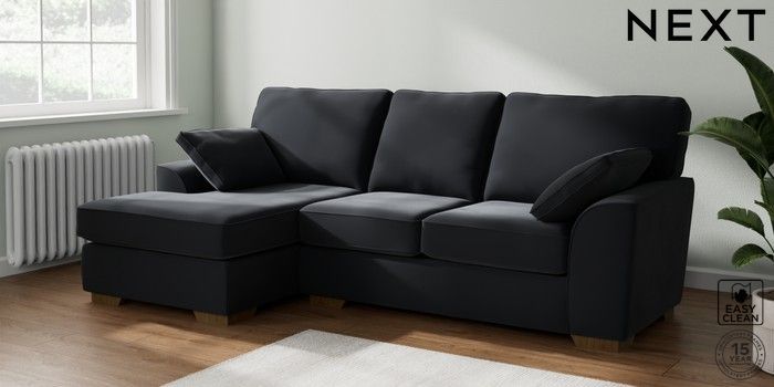 7.2.10 Buy Stamford Medium Sofa Chaise - Left Hand Plush Velvet Easy Clean Charcoal Grey Large Square Angle - Mid from the Laura Ashley online shop Click here to use our website with more accessibility support, for example screen readers