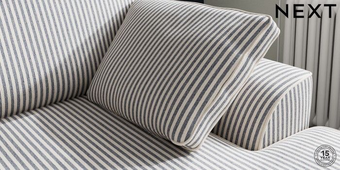 7.3.1 Buy Stamford Medium Sofa Chaise - Right Hand Chenille Stripe Slate Blue Large Square Angle - Dark from the Laura Ashley online shop Click here to use our website with more accessibility support, for example screen readers