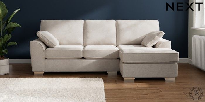 7.3.1 Buy Stamford Medium Sofa Chaise - Right Hand Chunky Chenille Oyster Large Square Angle - Chrome Metal from the Laura Ashley online shop