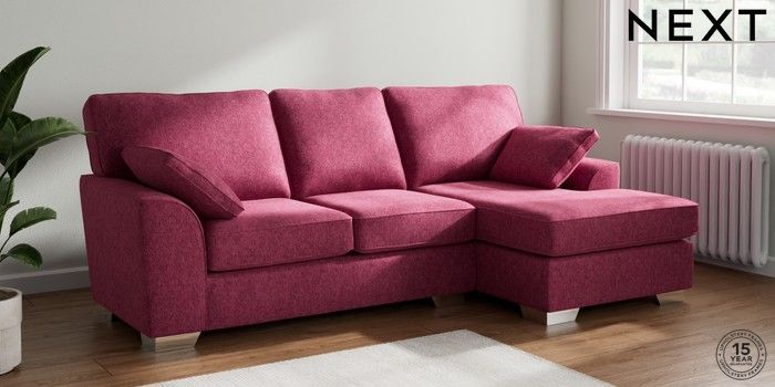 7.2.6 Buy Stamford Medium Sofa Chaise - Right Hand Cotswold Chenille Dark Raspberry Pink Large Square Angle - Chrome Metal from the Laura Ashley online shop Click here to use our website with more accessibility support, for example screen readers