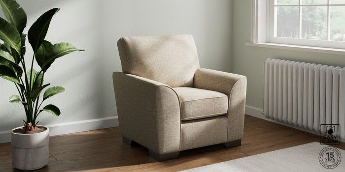 A chunky, hardwearing fabric with a timeless look which can tackle most household stains by blotting or gently wiping the fabric with water and a mild detergent. This Fabric is covered by the Quality Fabric Kitemark