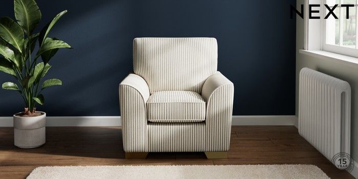 7.3.1 Buy Stamford Small Armchair Chenille Stripe Moss Green Square Angle - Brushed Brass from the Laura Ashley online shop Click here to use our website with more accessibility support, for example screen readers