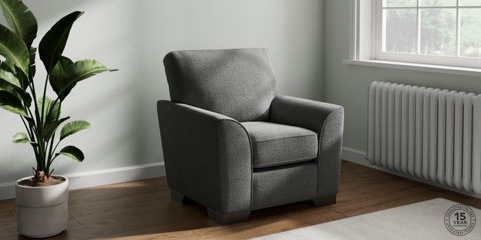 6.12.13 Buy Stamford Small Armchair Chunky Texture Dark Grey Square Angle - Gunmetal from the Laura Ashley online shop Click here to use our website with more accessibility support, for example screen readers