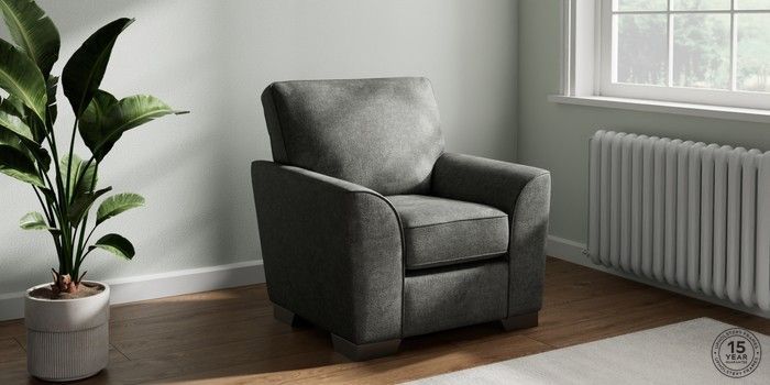 6.12.13 Buy Stamford Small Armchair Plush Chenille Dark Grey Square Angle - Gunmetal from the Laura Ashley online shop Click here to use our website with more accessibility support, for example screen readers