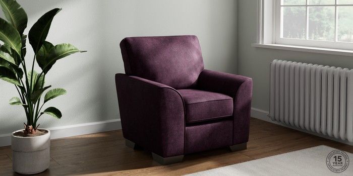 6.12.13 Buy Stamford Small Armchair Plush Chenille Dark Plum Purple Square Angle - Gunmetal from the Laura Ashley online shop Click here to use our website with more accessibility support, for example screen readers