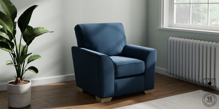 6.12.13 Buy Stamford Small Armchair Plush Velvet Easy Clean Airforce Blue Square Angle - Light from the Laura Ashley online shop Click here to use our website with more accessibility support, for example screen readers