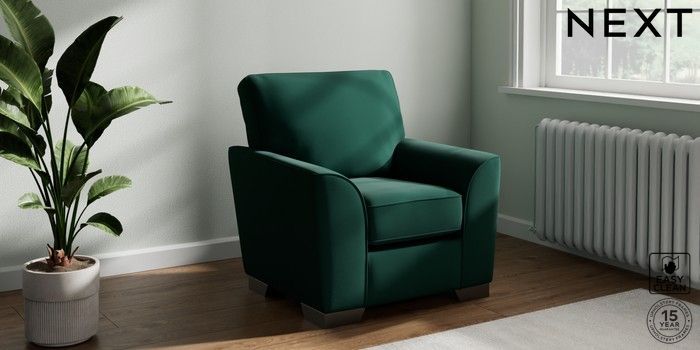 6.12.13 Buy Stamford Small Armchair Plush Velvet Easy Clean Bottle Green Square Angle - Gunmetal from the Laura Ashley online shop Click here to use our website with more accessibility support, for example screen readers