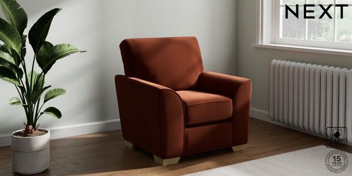 6.12.13 Buy Stamford Small Armchair Plush Velvet Easy Clean Ginger Orange Square Angle - Light from the Laura Ashley online shop Click here to use our website with more accessibility support, for example screen readers