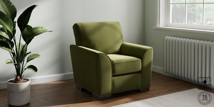 6.12.13 Buy Stamford Small Armchair Plush Velvet Easy Clean Mid Olive Green Square Angle - Gunmetal from the Laura Ashley online shop Click here to use our website with more accessibility support, for example screen readers