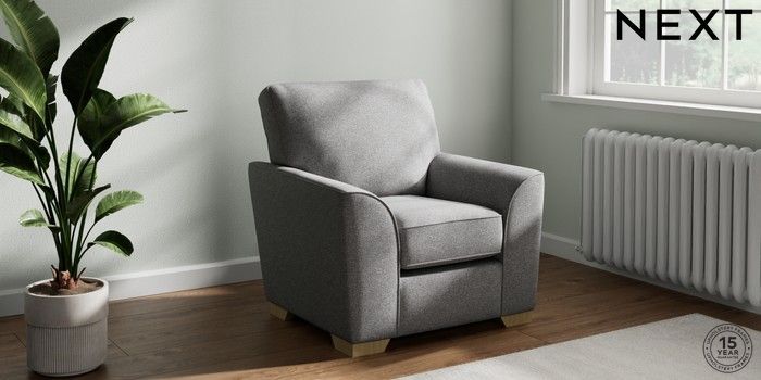 6.12.13 Buy Stamford Small Armchair Studio Chenille Mid Grey Square Angle - Light from the Laura Ashley online shop Click here to use our website with more accessibility support, for example screen readers