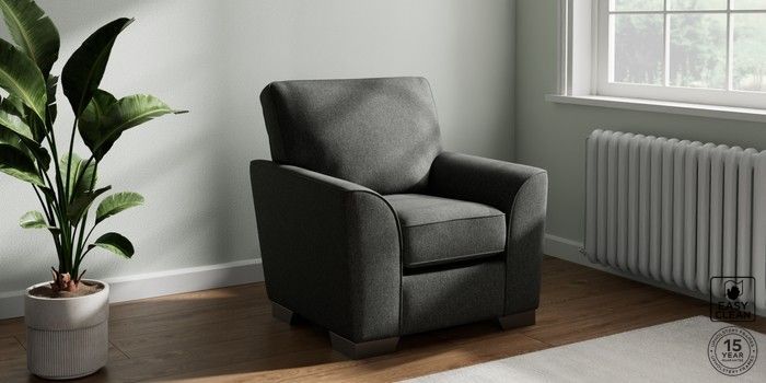 6.12.13 Buy Stamford Small Armchair Tweedy Blend Easy Clean Charcoal Grey Square Angle - Gunmetal from the Laura Ashley online shop Click here to use our website with more accessibility support, for example screen readers