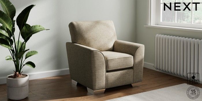 6.12.13 Buy Stamford Small Armchair Woven Chenille Easy Clean Mid Natural Square Angle - Chrome Metal from the Laura Ashley online shop Click here to use our website with more accessibility support, for example screen readers