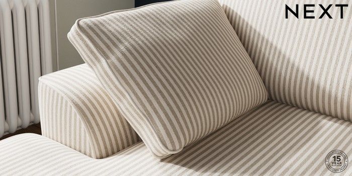 7.3.1 Buy Stamford Small Sofa Chaise - Left Hand Chenille Stripe Natural Large Square Angle - Dark from the Laura Ashley online shop Click here to use our website with more accessibility support, for example screen readers