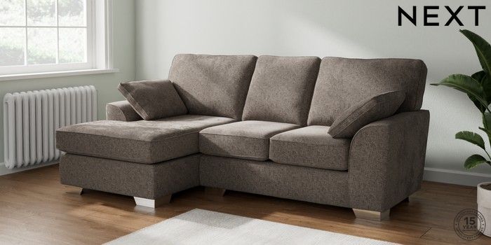 7.2.6 Buy Stamford Small Sofa Chaise - Left Hand Chunky Chenille Mink Brown Large Square Angle - Chrome Metal from the Laura Ashley online shop Click here to use our website with more accessibility support, for example screen readers