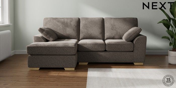 7.2.10 Buy Stamford Small Sofa Chaise - Left Hand Chunky Chenille Mink Brown Large Square Angle - Light from the Laura Ashley online shop Click here to use our website with more accessibility support, for example screen readers