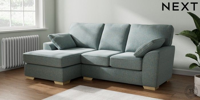 7.2.6 Buy Stamford Small Sofa Chaise - Left Hand Chunky Marl Mid Blue Large Square Angle - Light from the Laura Ashley online shop Click here to use our website with more accessibility support, for example screen readers