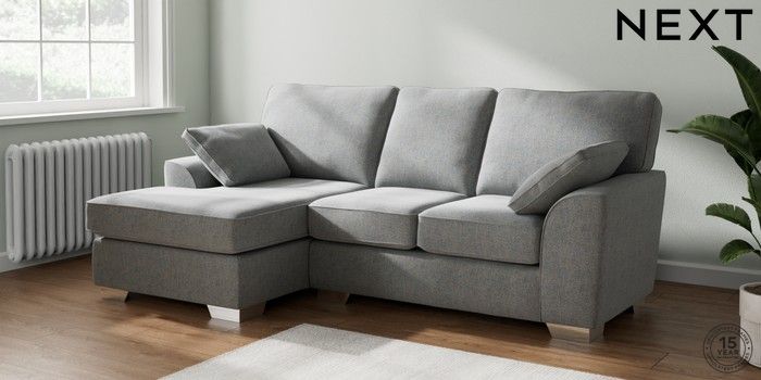 7.2.6 Buy Stamford Small Sofa Chaise - Left Hand Chunky Marl Mid Grey Large Square Angle - Chrome Metal from the Laura Ashley online shop Click here to use our website with more accessibility support, for example screen readers