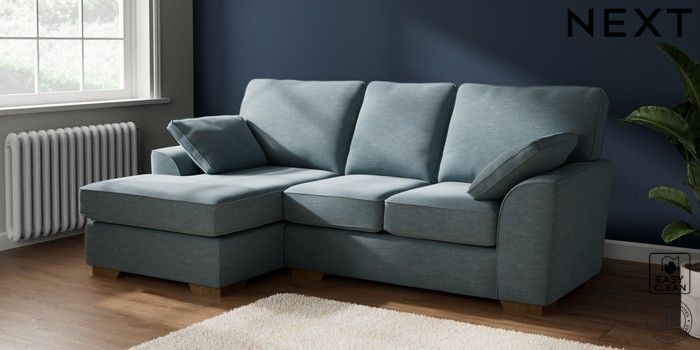 7.2.6 Buy Stamford Small Sofa Chaise - Left Hand Fine Chenille Easy Clean Mid Blue Large Square Angle - Mid from the Laura Ashley online shop Click here to use our website with more accessibility support, for example screen readers