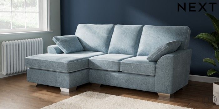 7.2.6 Buy Stamford Small Sofa Chaise - Left Hand Plush Chenille Light Blue Large Square Angle - Chrome Metal from the Laura Ashley online shop Click here to use our website with more accessibility support, for example screen readers