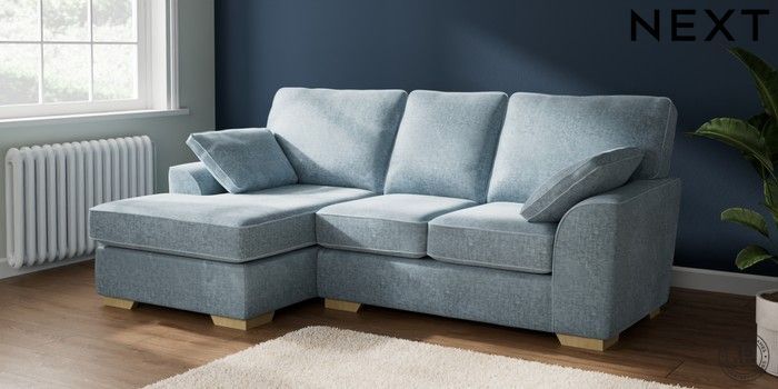 7.2.6 Buy Stamford Small Sofa Chaise - Left Hand Plush Chenille Light Blue Large Square Angle - Light from the Laura Ashley online shop Click here to use our website with more accessibility support, for example screen readers