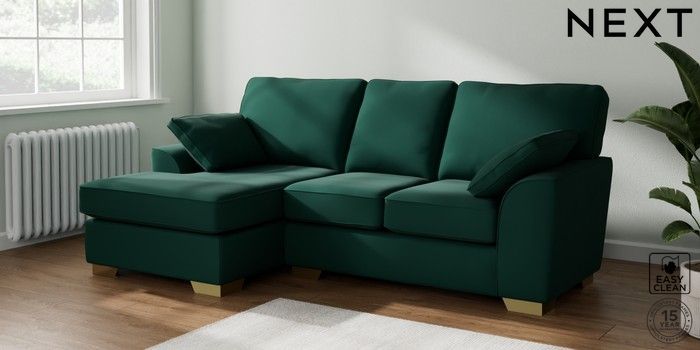 6.12.1 Buy Stamford Small Sofa Chaise - Left Hand Plush Velvet Easy Clean Bottle Green Large Square Angle - Brushed Brass from the Laura Ashley online shop Click here to use our website with more accessibility support, for example screen readers