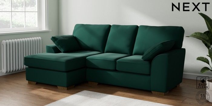 6.12.1 Buy Stamford Small Sofa Chaise - Left Hand Plush Velvet Easy Clean Bottle Green Large Square Angle - Mid from the Laura Ashley online shop Click here to use our website with more accessibility support, for example screen readers