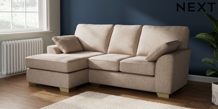 7.2.6 Buy Stamford Small Sofa Chaise - Left Hand Tweedy Chenille Mid Natural Large Square Angle - Brushed Brass from the Laura Ashley online shop Click here to use our website with more accessibility support, for example screen readers
