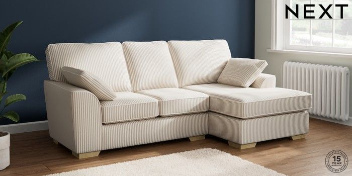 7.3.1 Buy Stamford Small Sofa Chaise - Right Hand Chenille Stripe Natural Large Square Angle - Light from the Laura Ashley online shop Click here to use our website with more accessibility support, for example screen readers