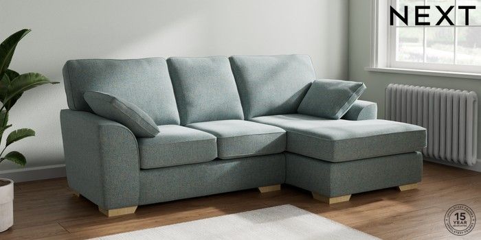 7.2.6 Buy Stamford Small Sofa Chaise - Right Hand Chunky Marl Mid Blue Large Square Angle - Light from the Laura Ashley online shop Click here to use our website with more accessibility support, for example screen readers