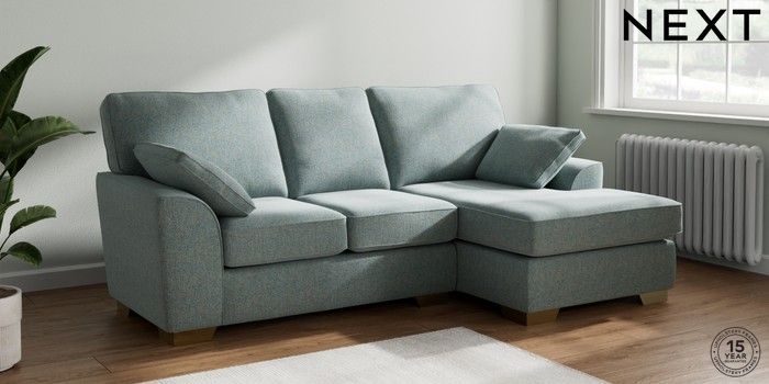6.12.1 Buy Stamford Small Sofa Chaise - Right Hand Chunky Marl Mid Blue Large Square Angle - Brushed Brass from the Laura Ashley online shop Click here to use our website with more accessibility support, for example screen readers