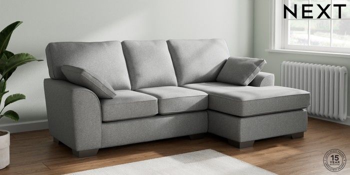 7.2.6 Buy Stamford Small Sofa Chaise - Right Hand Chunky Weave Mid Grey Large Square Angle - Gunmetal from the Laura Ashley online shop Click here to use our website with more accessibility support, for example screen readers
