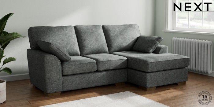 7.2.6 Buy Stamford Small Sofa Chaise - Right Hand Cotswold Chenille Dark Grey Large Square Angle - Mid from the Laura Ashley online shop Click here to use our website with more accessibility support, for example screen readers