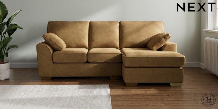7.2.6 Buy Stamford Small Sofa Chaise - Right Hand Luxe Chenille Honey Yellow Large Square Angle - Brushed Brass from the Laura Ashley online shop Click here to use our website with more accessibility support, for example screen readers