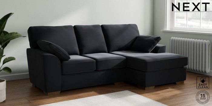 7.2.10 Buy Stamford Small Sofa Chaise - Right Hand Plush Velvet Easy Clean Charcoal Grey Large Square Angle - Mid from the Laura Ashley online shop Click here to use our website with more accessibility support, for example screen readers