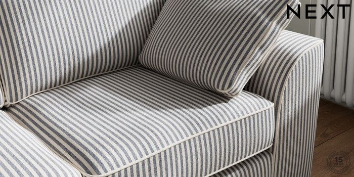7.3.1 Buy Stamford Sofa Bed Chenille Stripe Slate Blue Large Square Angle - Chrome Metal from the Laura Ashley online shop Click here to use our website with more accessibility support, for example screen readers