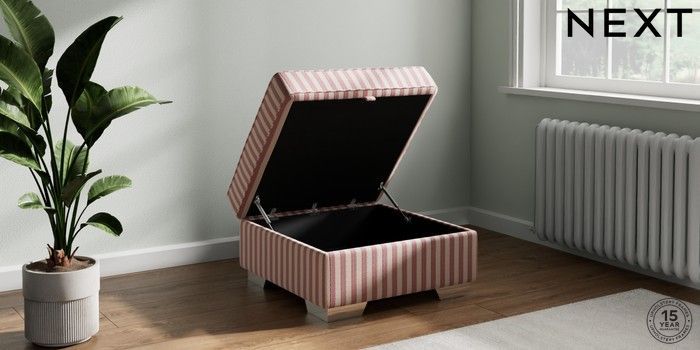 7.3.1 Buy Stamford Storage Footstool Bold Chenille Stripe Dark Pink Square Angle - Chrome Metal from the Laura Ashley online shop Click here to use our website with more accessibility support, for example screen readers