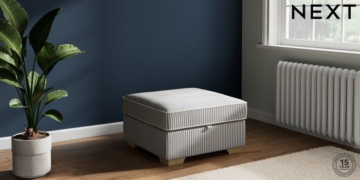 7.3.1 Buy Stamford Storage Footstool Chenille Stripe Slate Blue Square Angle - Light from the Laura Ashley online shop Click here to use our website with more accessibility support, for example screen readers