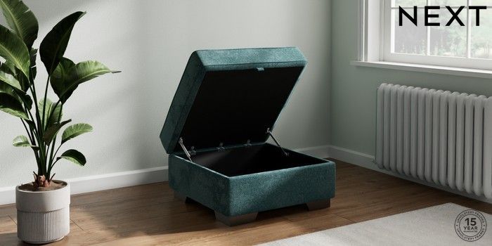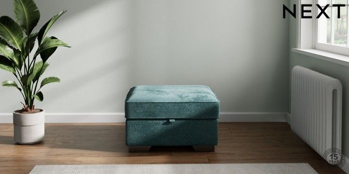 7.2.6 Buy Stamford Storage Footstool Chunky Chenille Mid Teal Green Square Angle - Gunmetal from the Laura Ashley online shop Click here to use our website with more accessibility support, for example screen readers