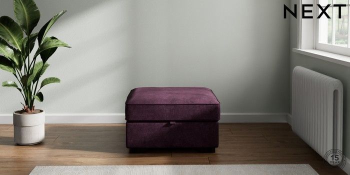 7.2.6 Buy Stamford Storage Footstool Plush Chenille Dark Plum Purple Square Angle - Dark from the Laura Ashley online shop Click here to use our website with more accessibility support, for example screen readers