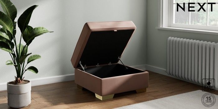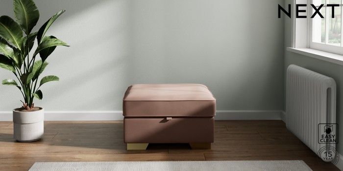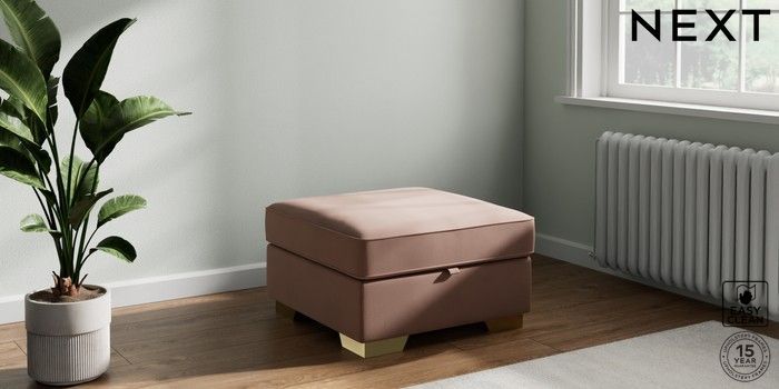 7.2.6 Buy Stamford Storage Footstool Plush Velvet Easy Clean Mid Natural Square Angle - Brushed Brass from the Laura Ashley online shop Click here to use our website with more accessibility support, for example screen readers