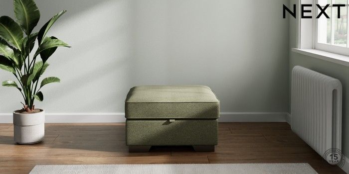 7.2.6 Buy Stamford Storage Footstool Tweedy Chenille Mid Moss Green Square Angle - Gunmetal from the Laura Ashley online shop Click here to use our website with more accessibility support, for example screen readers