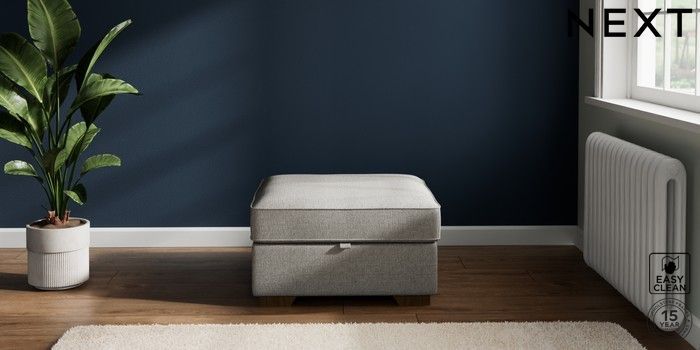 7.2.6 Buy Stamford Storage Footstool Woven Chenille Easy Clean Light Grey Square Angle - Mid from the Laura Ashley online shop Click here to use our website with more accessibility support, for example screen readers
