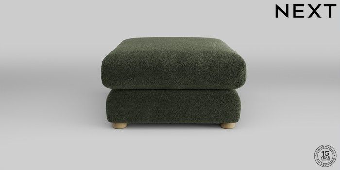 6.12.1 Buy The Sumptuous Deep Relaxed Sit Footstool Boucle Chenille Dark Moss Green Low Tube - Light from the Laura Ashley online shop Click here to use our website with more accessibility support, for example screen readers