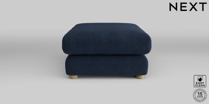 6.12.1 Buy The Sumptuous Deep Relaxed Sit Footstool Fine Chenille Easy Clean Dark Navy Blue Low Tube - Light from the Laura Ashley online shop Click here to use our website with more accessibility support, for example screen readers