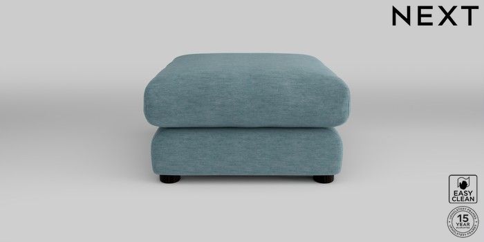 6.12.1 Buy The Sumptuous Deep Relaxed Sit Footstool Fine Chenille Easy Clean Mid Blue Low Tube - Dark from the Laura Ashley online shop Click here to use our website with more accessibility support, for example screen readers