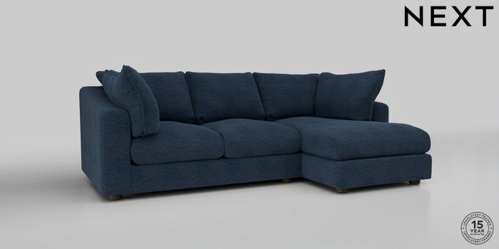 6.12.1 Buy The Sumptuous Deep Relaxed Sit Medium Sofa Chaise - Right Hand Ripple Chenille Dark Blue Low Tube - Mid from the Laura Ashley online shop Click here to use our website with more accessibility support, for example screen readers