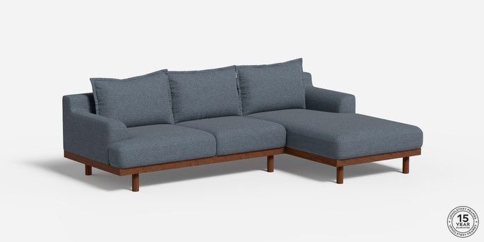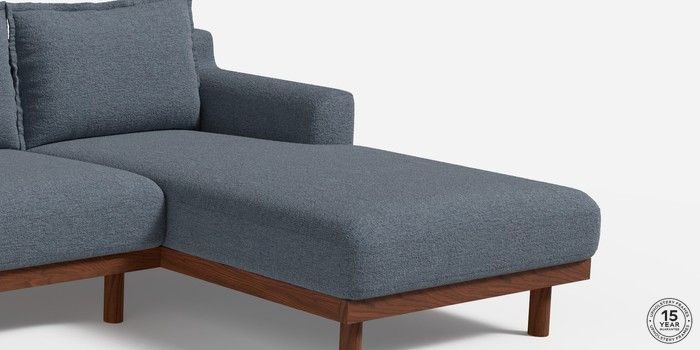 6.12.1 Buy Turin by Made Medium Sofa Chaise - Right Hand Boucle Textured Weave Slate Blue Plinth - Walnut from the Laura Ashley online shop Click here to use our website with more accessibility support, for example screen readers
