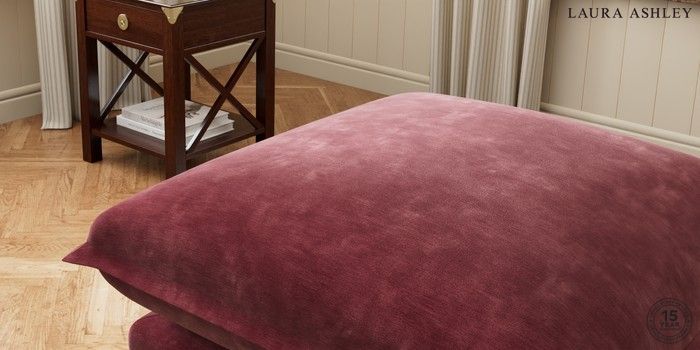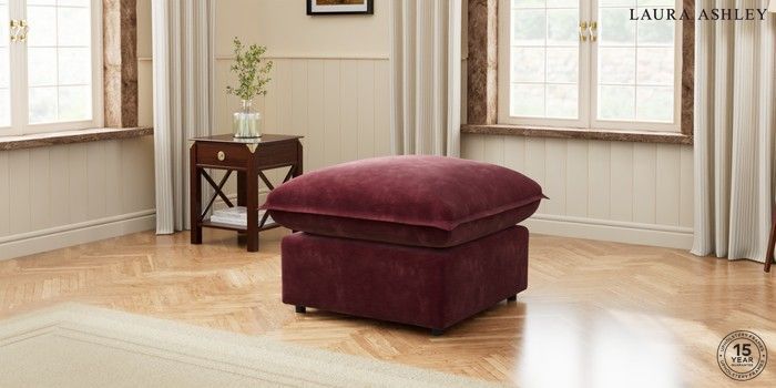 7.2.5 Buy Westerham by Laura Ashley Footstool Alwyn Velvet Burgundy Red Glide from the Laura Ashley online shop Click here to use our website with more accessibility support, for example screen readers